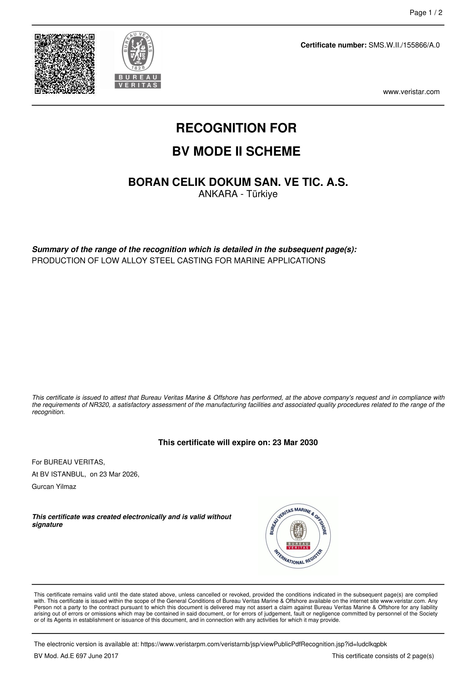 Boran Çelik Döküm Sanayii ve Ticaret A.Ş Ankara - Başkent Organize sanayii bölgesindeki 5400 m² lik arsası üzerinde bulunan toplam 3250 m² kapalı tesislerde 2006 yılında faaliyete başlamıştır. Geçen yıllar boyunca Boran,düşük-orta-yüksek alaşımlı çelik dökümler....